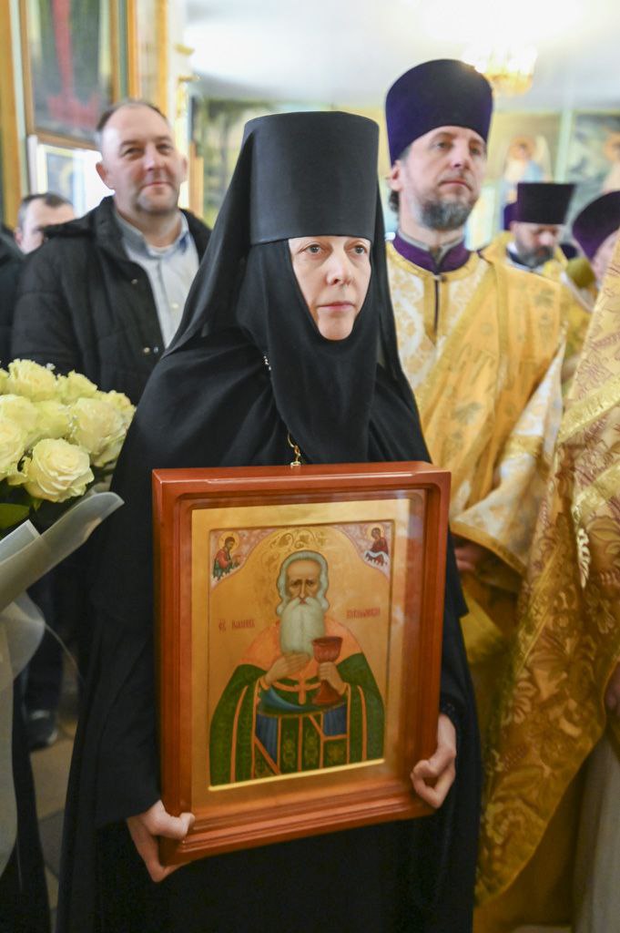 Праздничный день начался с акафиста у раки с мощами небесного покровителя обители — святого праведного Иоанна Кормянского.